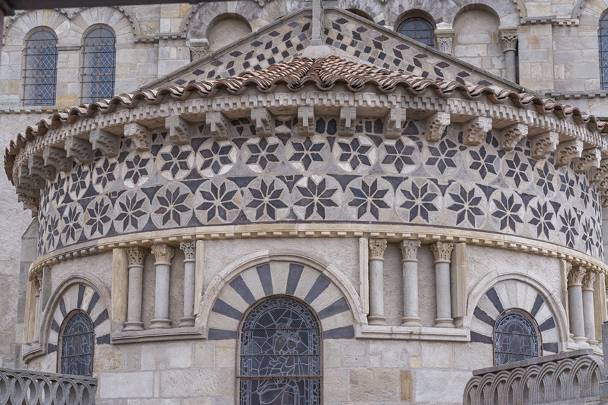 Les édifices majeurs sont finement étudiés, comme la basilique Notre-Dame-du-Port de Clermont-Ferrand, l’église Saint-Austremoine d’Issoire, la basilique Notre-Dame d’Orcival, l’église de Saint-Nectaire et l’église Notre-Dame de Saint-Saturnin.